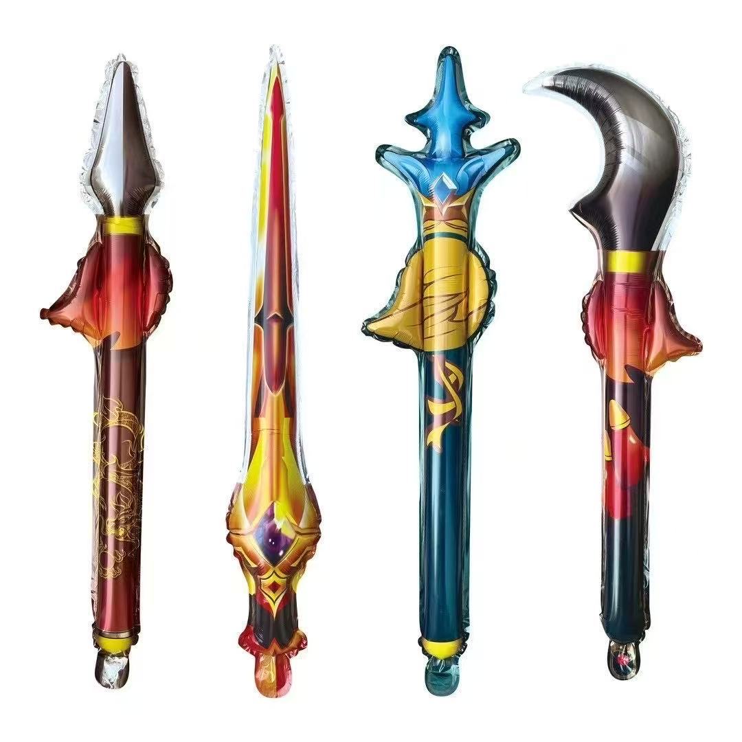 儿童充气宝剑铝膜气球刀枪铝箔汽球破风刀红缨枪弯月宝刀尚方宝剑