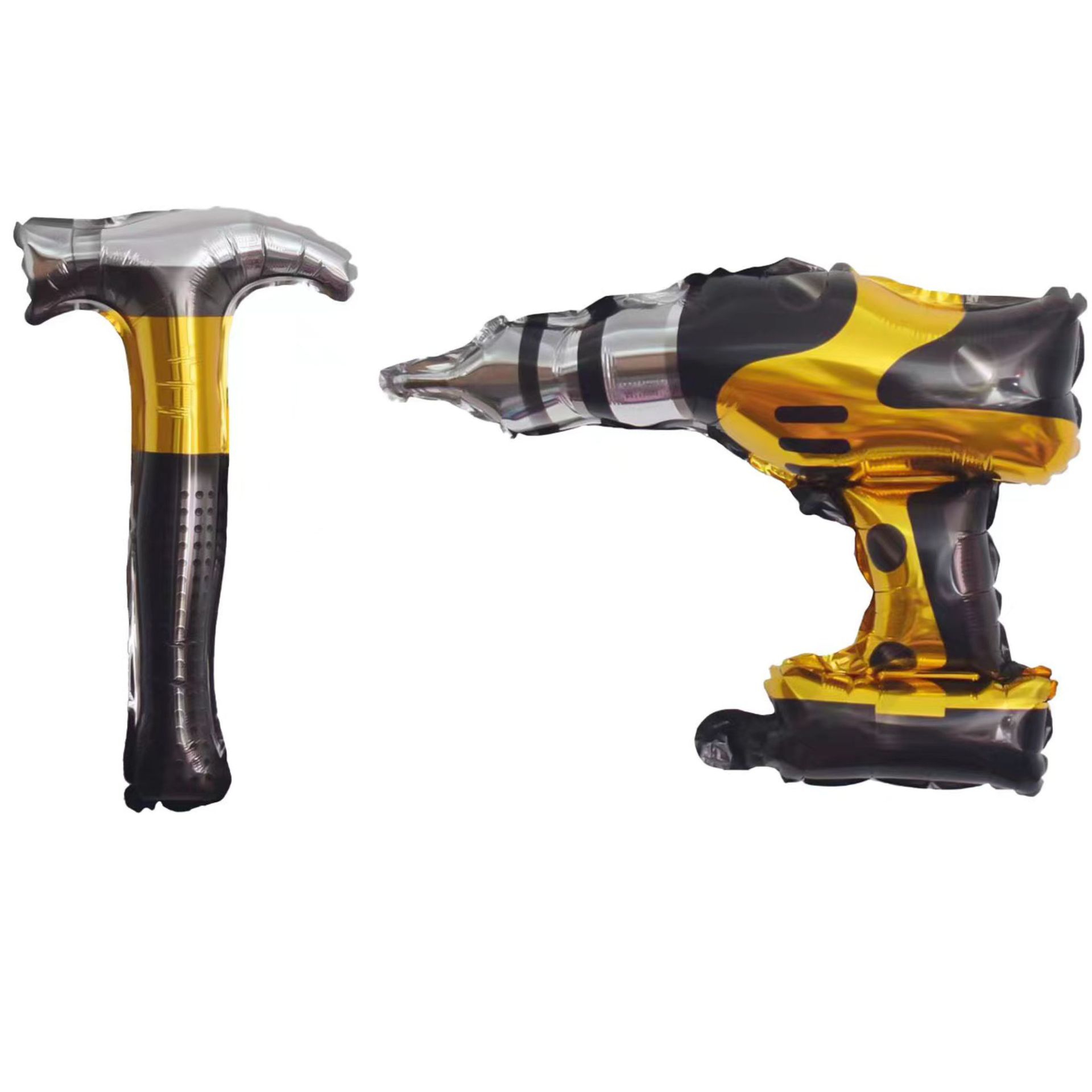 Balon foil aluminium dekorasi pesta balon liburan Hari Ayah lintas batas balon film aluminium bentuk palu bor elektrik