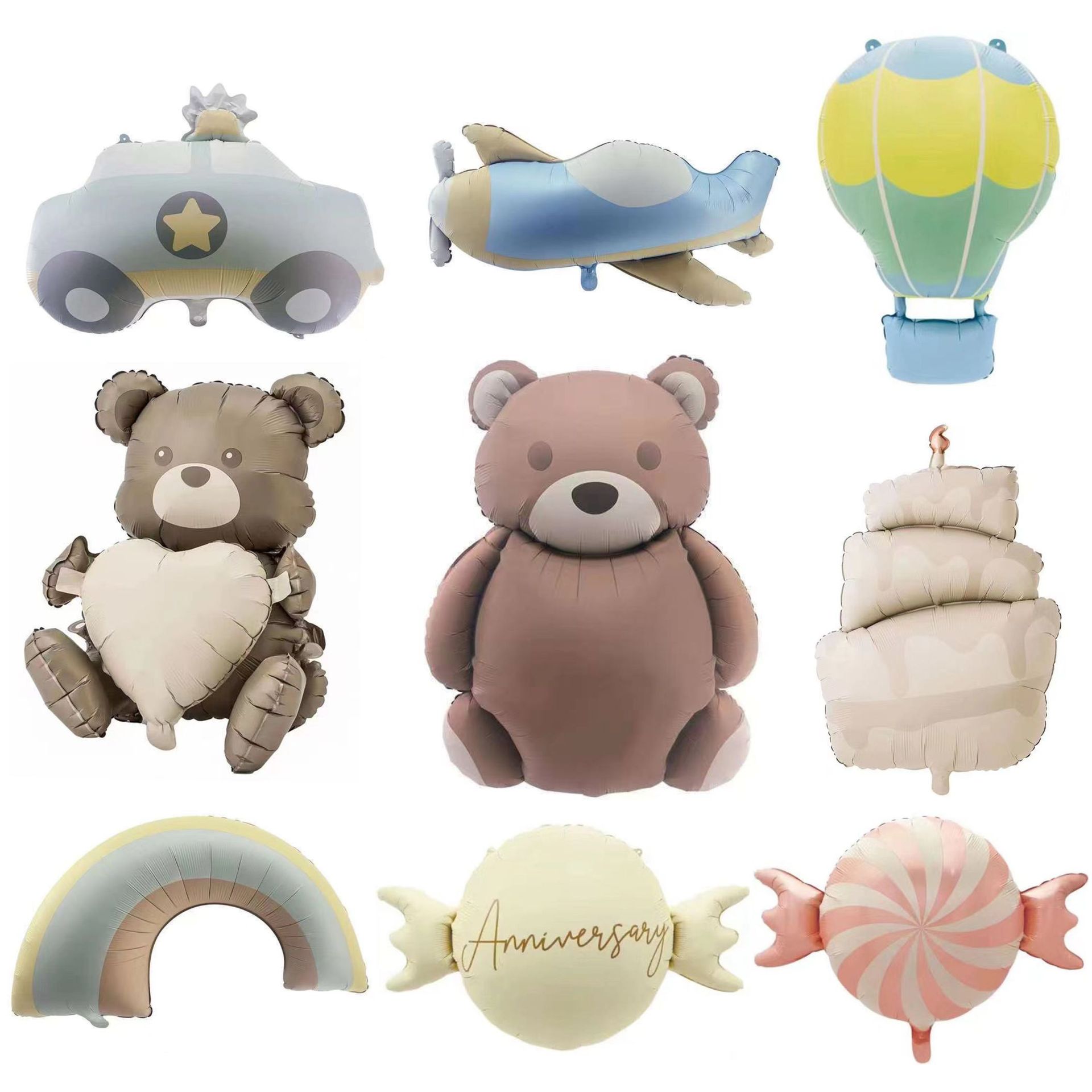 Balon film aluminium warna Matte besar beruang coklat memegang cinta kue permen balon udara panas mobil polisi pesawat dinosaurus pelangi