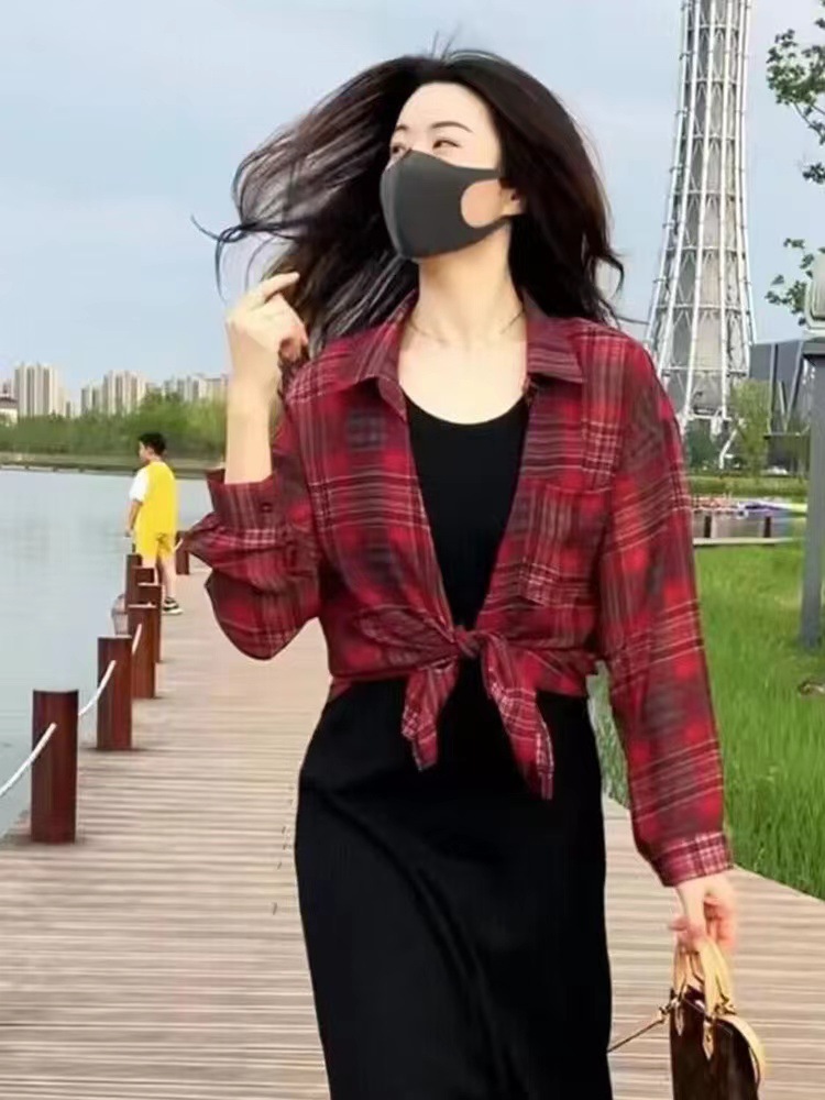 Kemeja Kotak-kotak Pelindung Matahari untuk Wanita, Musim Panas 2025, Atasan Lengan Panjang Tipis Longgar Kasual Pelindung Matahari, Jaket Komuter Serbaguna.