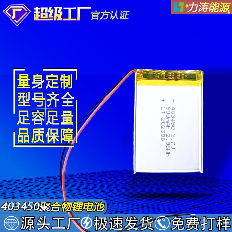 Baterai polimer lithium 403450 800mAh 3.7V untuk perangkat pintar yang dapat dikenakan, speaker pintar, lampu berkemah