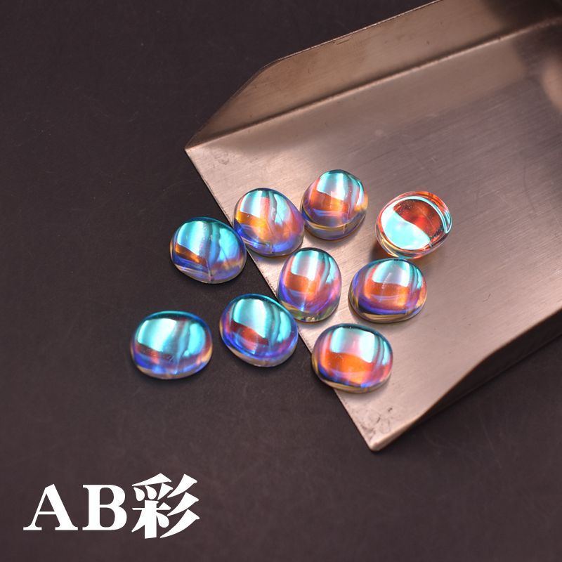 AB warna Moonstone batu Oval datar polos batu telanjang warna ajaib berlian berbentuk telur permukaan cincin permata kaca permukaan
