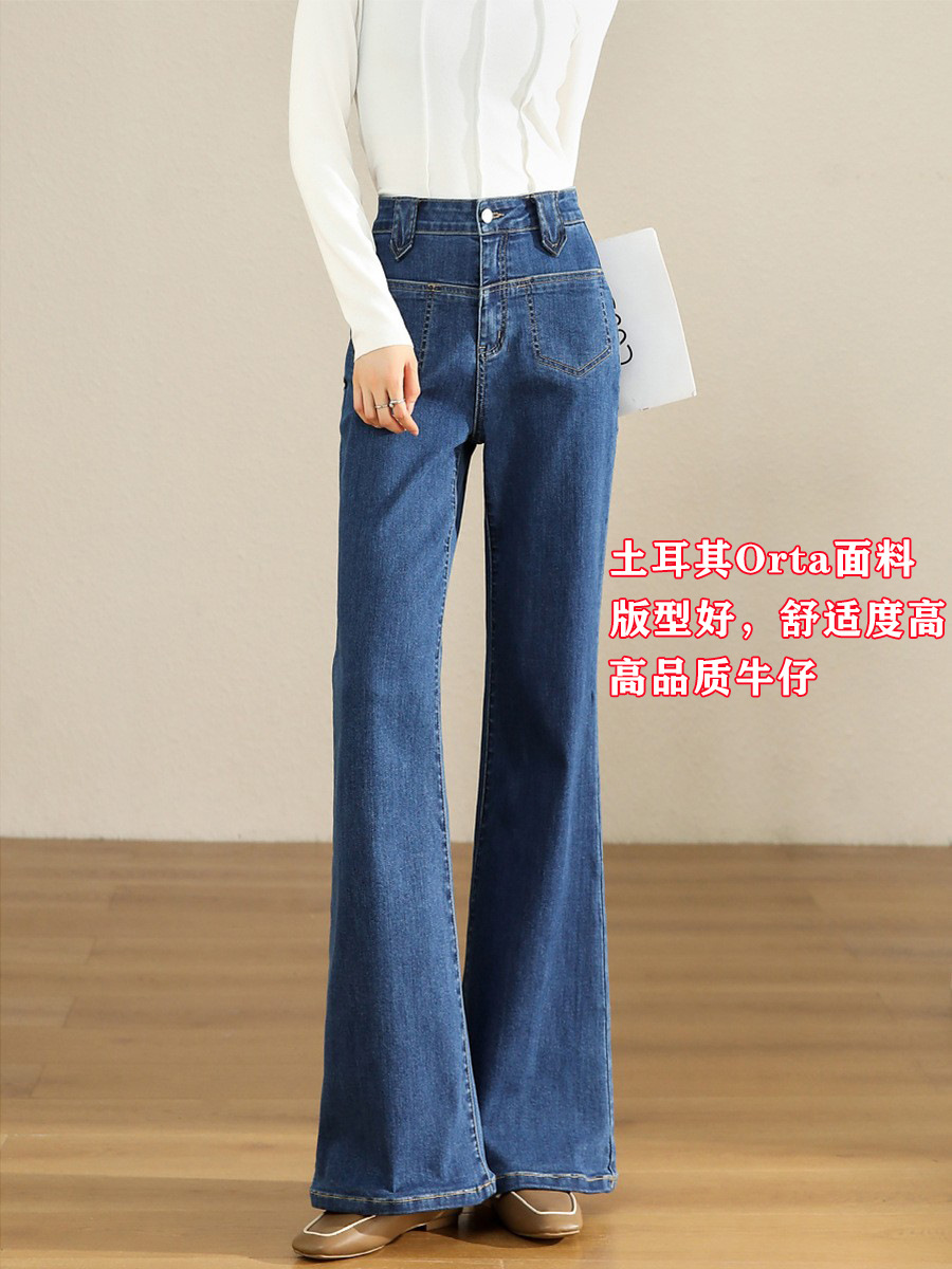 Diskon khusus merek celana fashion wanita model flare warna biru washed high-waisted longgar dari produsen jeans