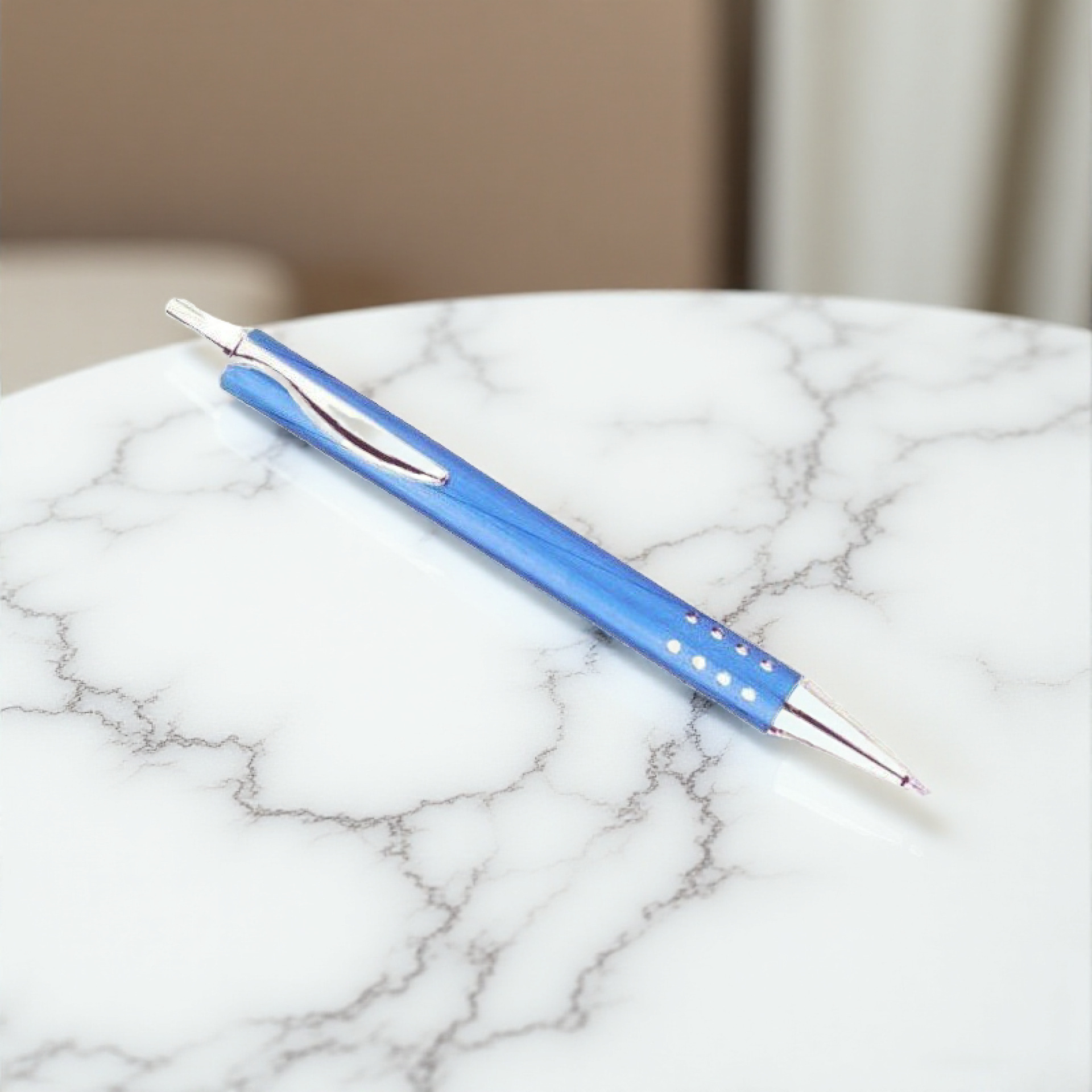 Pena logam, pena bolpoin logam, paduan yang diperkuat, biru langit dengan lubang, pena industri, pena untuk industri.