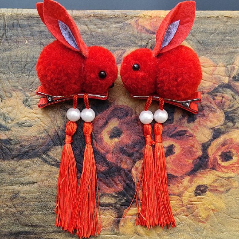 Aksesoris rambut anak-anak, jepit rambut gadis yang manis dan imut, aksesoris rambut rumbai kelinci tiga dimensi multi-warna, mewah