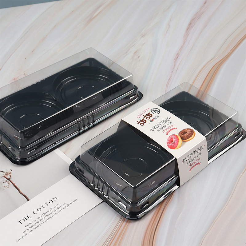 Kotak kemasan makanan donat, kotak pembungkus makanan, kotak blister panjang sekali pakai transparan 2 buah, kue kering