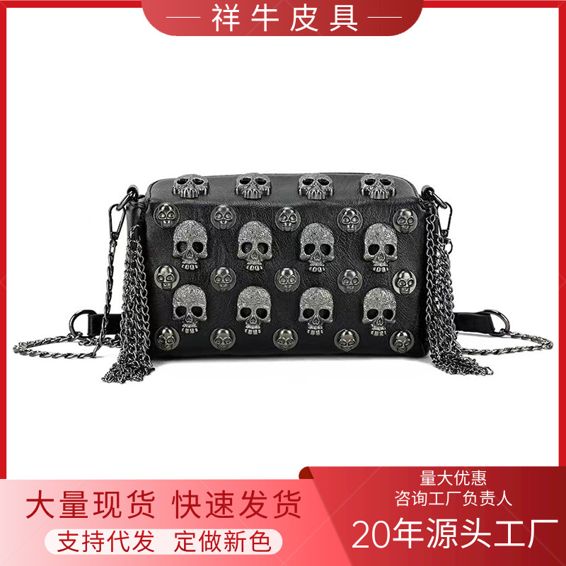 Cross-border Amazon grosir baru Wansheng skull tas persegi kecil hitam lucu tas kurir bahu rantai rumbai