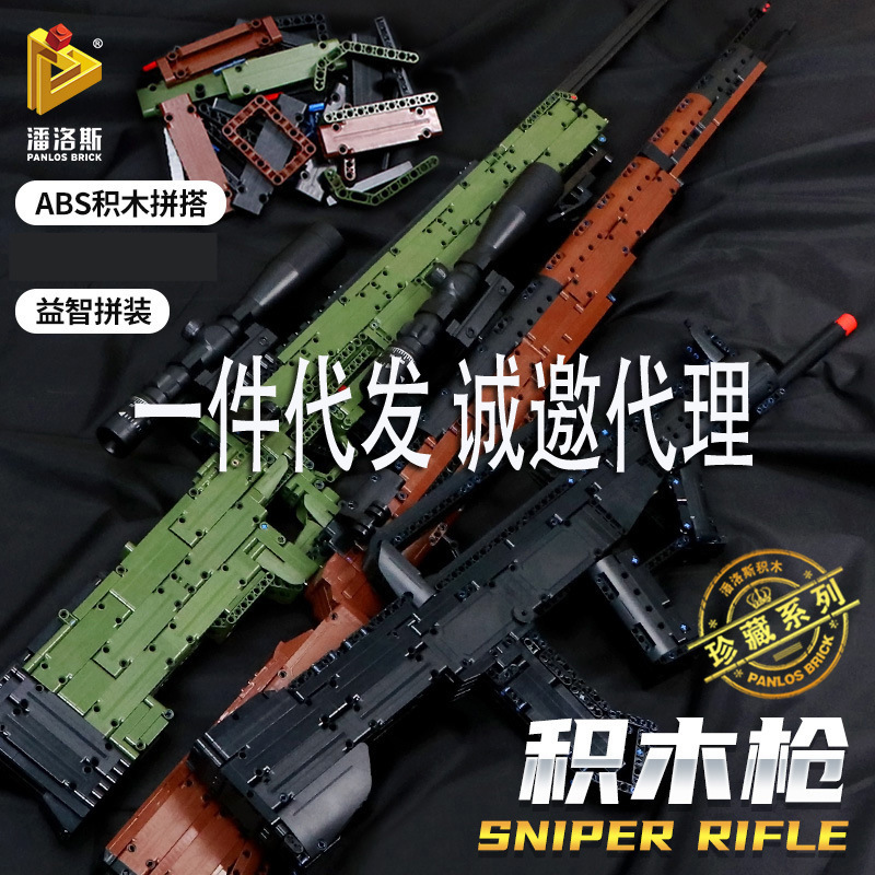 Panlos 67001-18 senapan parade militer 95-jenis senapan AWM senapan sniper AKM dirakit 98K mainan blok bangunan
