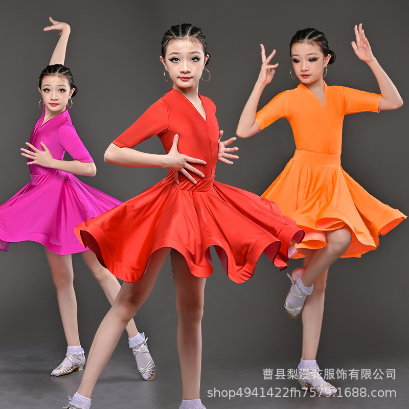 Pakaian pertunjukan tari Latin anak-anak perempuan pakaian latihan musim semi dan musim panas pakaian performa kompetisi tari standar nasional baru