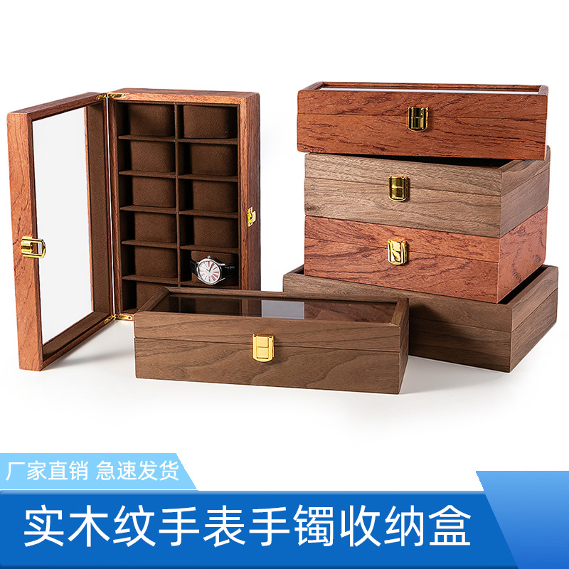 Produsen Barang Tersedia Kotak Jam Tangan Kenari Hitam Kotak Kemasan Jam Tangan Penyimpanan Rumah Tangga Kualitas Kayu Kotak Jam Tangan Rumah Tangga Kotak Kayu