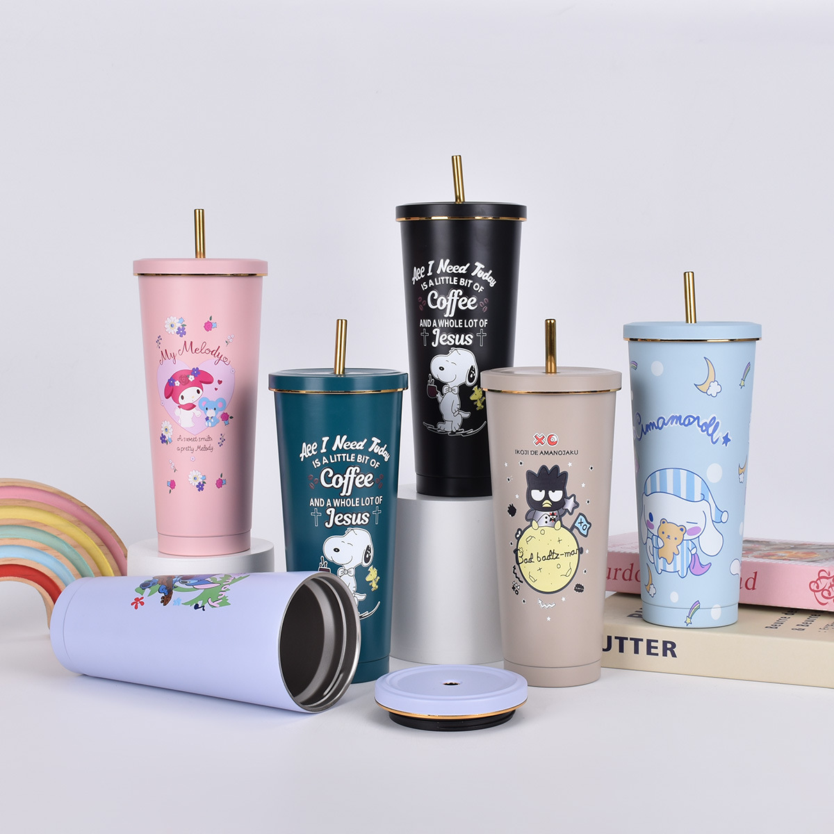Produsen cangkir sedotan baja tahan karat 304 yang dipilih dengan cermat, cangkir vakum berinsulasi kapasitas besar bergambar kartun, cangkir air portabel untuk rumah tangga, grosir
