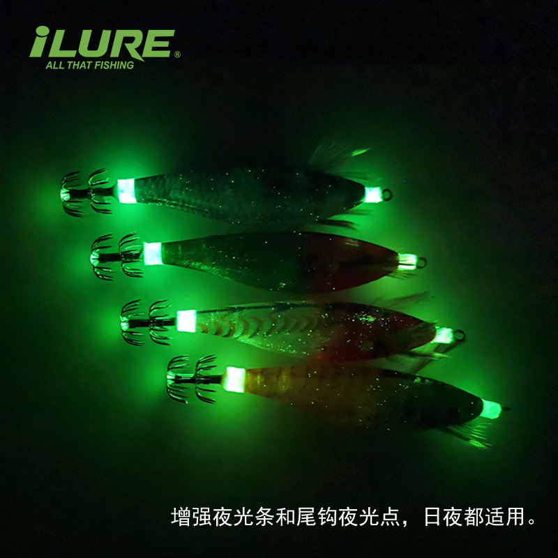 Pasokan produsen Ailuya umpan udang kayu umpan elektronik horisontal tujuh warna umpan segel cumi-cumi bercahaya UV