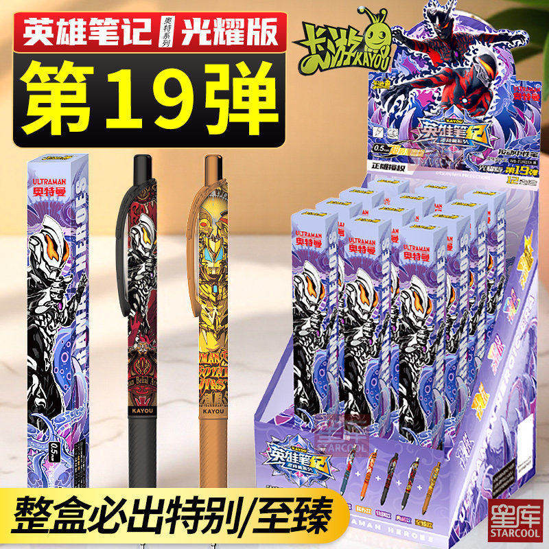 Pena gel retractable berlisensi resmi seri blind box Ultraman baru 19 dan 10, alat tulis untuk siswa sekolah dasar, pena tanda tangan.