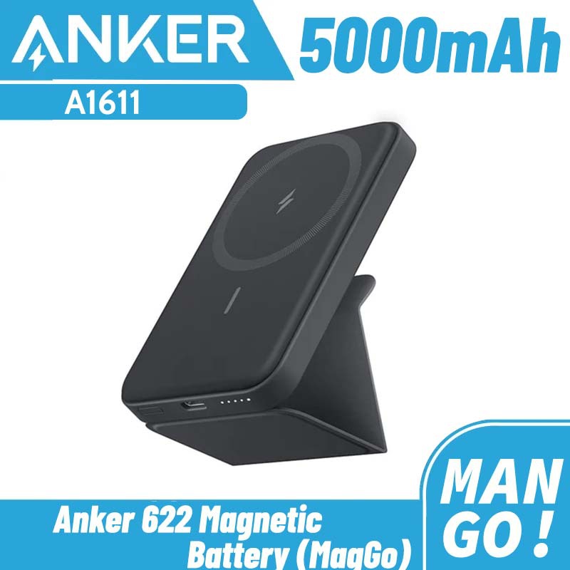 Anker Anke power bank MagGo penyedot magnet, dengan braket pengisian nirkabel portabel 5000mAh catu daya ponsel yang berlaku