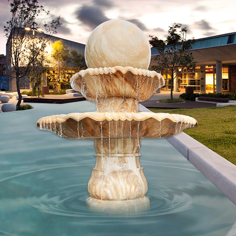 Patung batu Feng Shui, air mancur, fitur air vila, patung air mengalir, ornamen, batu granit kuning berkarat, mangkuk air, batu merah senja