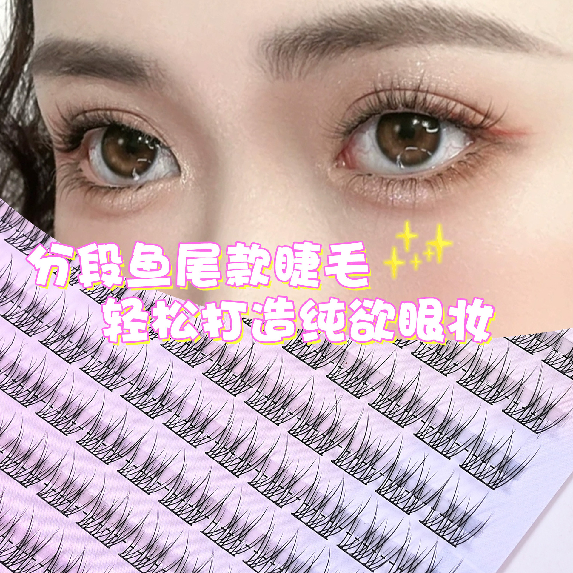 Bulu mata palsu ekor ikan bersegmen 10 baris rambut tumbuh sendiri fishtail tunggal bulu mata besar riasan telanjang alami nyaman
