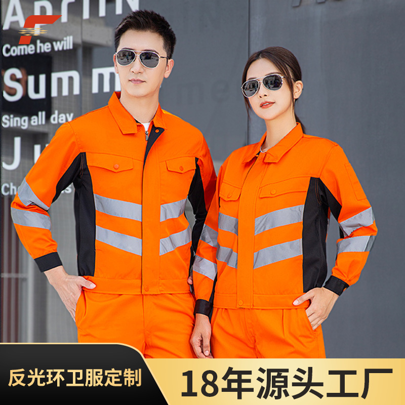 Setelan Pakaian Kerja Sanitasi Kustom Pekerja Kota Konstruksi Jalan Pemeliharaan Bersih Hijau Strip Reflektif Pakaian Perlindungan Tenaga Kerja