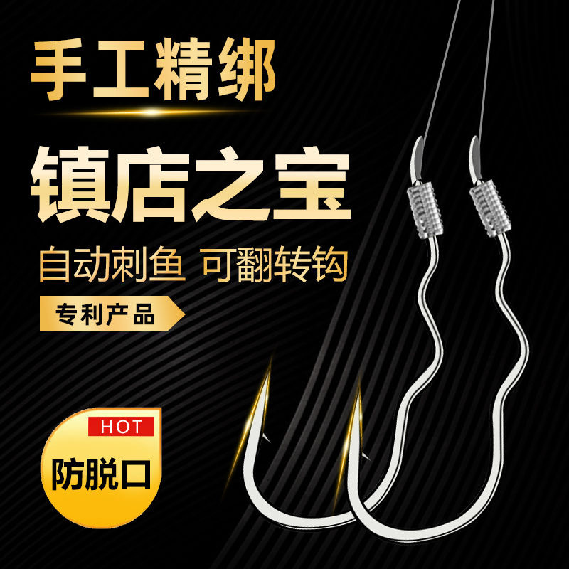 Kait flip otomatis tiga kait terbalik, kait artefak memancing otomatis kait ganda ikat asli