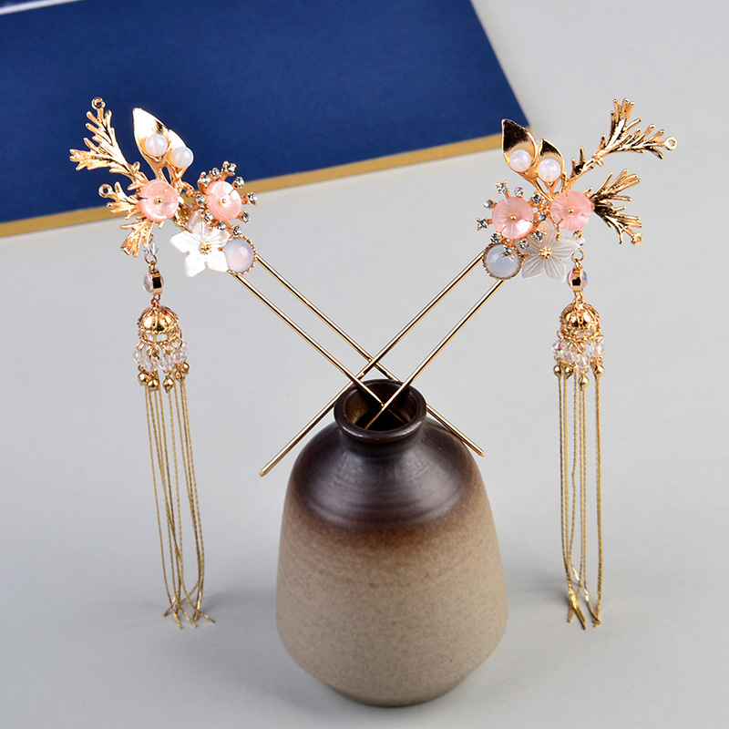 Aksesoris rambut gaya klasik, rumbai alami merah pernikahan gaya Cina jepit rambut Hanfu hiasan kepala dalam stok grosir