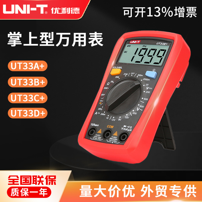 Unide UT33A/B/C/D + multimeter lampu latar tampilan digital rentang otomatis multi-tujuan versi ditingkatkan antibakar