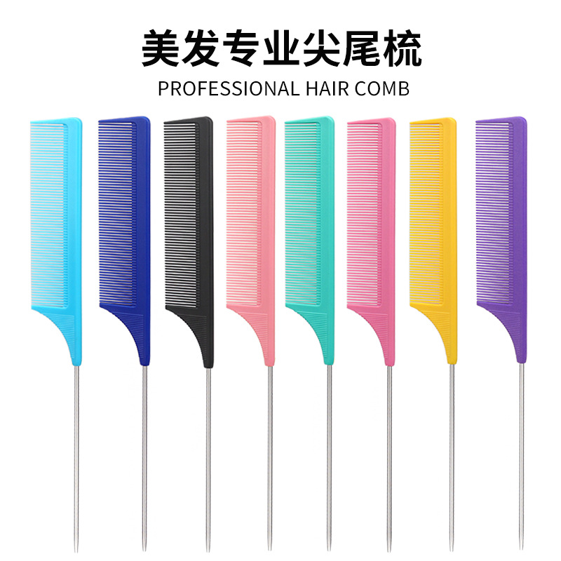 Sisir Anti statis penata rambut, sisir salon penata rambut profesional memotong gigi halus dicelup jarum baja ujung lancip, sisir makeup artis khusus