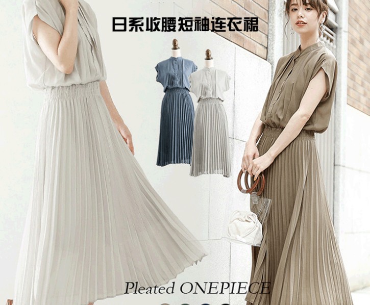 Pakaian wanita elegan rok sifon gaya Jepang, Gaun pinggang nyaman lengan pendek musim panas
