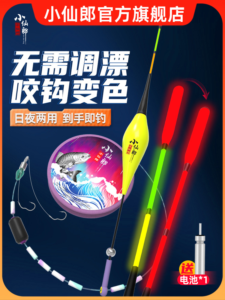 Set set pancing apung pendek ikan mas apung bercahaya elektronik, tidak perlu menyesuaikan pelampung, diikat dan diotak-otakkan secara otomatis kait ganda, sensitivitas tinggi Xiaoxianlang