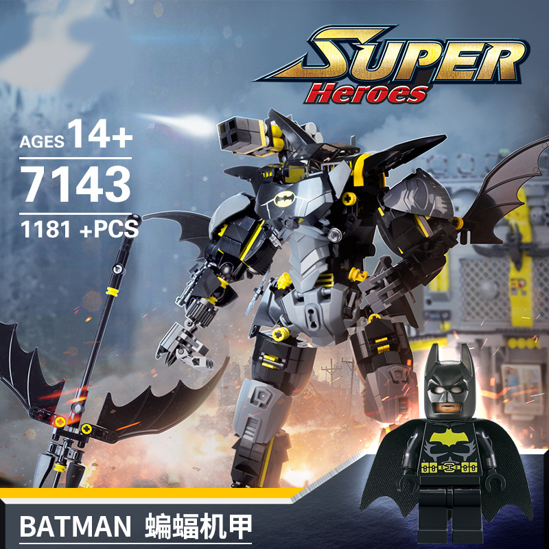 Blok Bangunan Buatan Dalam Negeri Elemen Batu Bata Hitam Batman Mech Robot Model Plastik Rakitan Blok Bangunan Mainan Hadiah