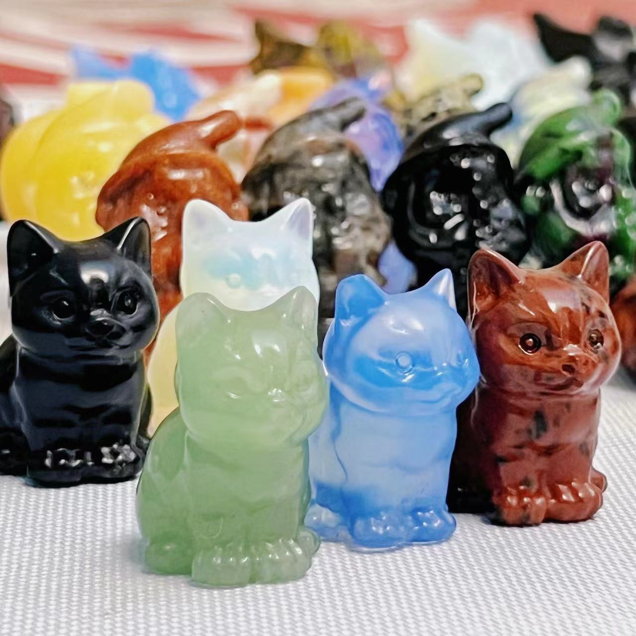 Kristal alami kucing Beruntung ukiran kristal batu mentah ukiran kucing desktop hewan ornamen liontin anak kucing grosir