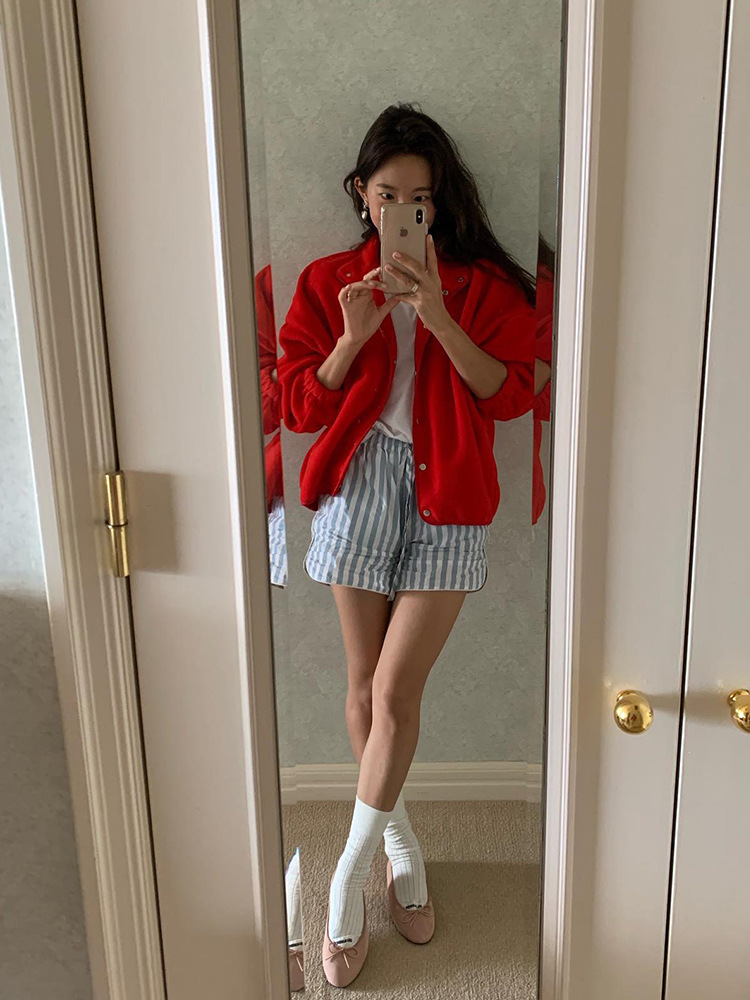 Spot Natal Jaket Bulu Polar Merah Wanita Longgar 2024 Atasan Lengan Panjang Kasual Musim Gugur dan Musim Dingin Korea Baru