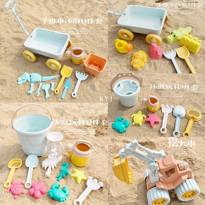 Mainan pantai anak-anak, setelan ember pantai ember pasir tebal alat penggali jerami gandum