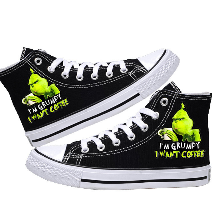 Sepatu kanvas high-top gambar perifer Natal sepatu kanvas liburan motif hijau bulu aneh sepatu kanvas pria dan wanita