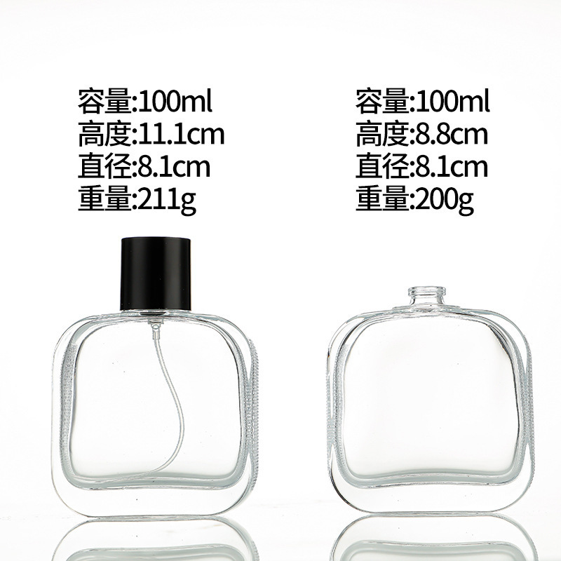 Botol parfum 100ml dengan tutup persegi, botol semprot minyak esensial sub botol parfum kaca botol kosong sampel kelas atas