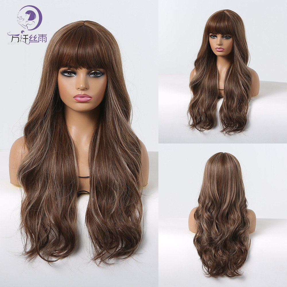 Sarung Wig Wig Serat Kimia Warna Modis Warna Keriting Panjang Wanita Coklat Lintas Batas Eropa Amerika