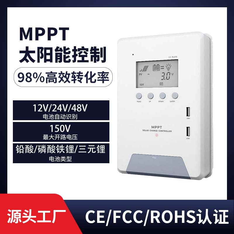 MPPT pengontrol tenaga surya 24v, identifikasi otomatis konversi efisien mendukung baterai lithium USB pembangkit daya fotovoltaik asam timbal