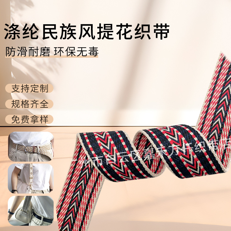 Tas selempang retro dengan tali bahu dari kain kanvas bergaya etnik jacquard poliester, aksesoris tas fashion, kustomisasi webbing.