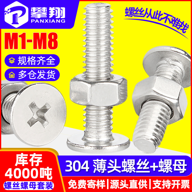 Set Sekrup Kepala Datar Besar 304 CM Stainless Steel Kepala Tipis Kepala Datar Sekrup Kombinasi M3M4M5M6
