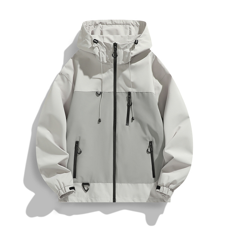 Jaket Pria Warna Polos Musim Semi dan Musim Gugur Jaket Mantel Satu Lapis Mendaki Gunung Empat Musim Tahan Angin Tahan Air