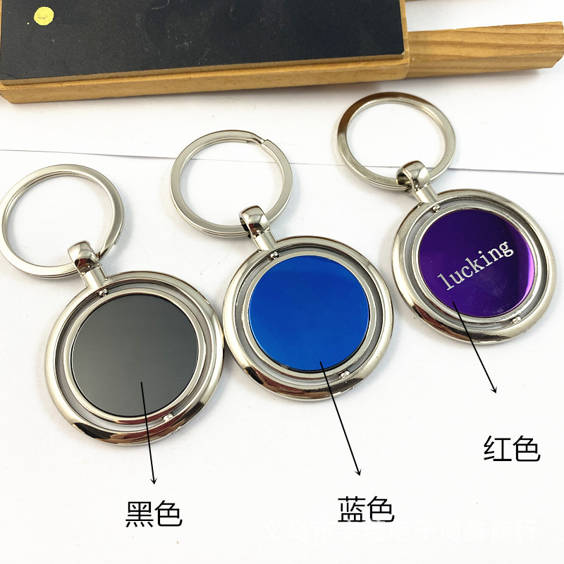 Gantungan Kunci stainless steel bulat, gantungan kunci perusahaan liontin huruf glossy berputar dua sisi, gantungan kunci hadiah plat nomor