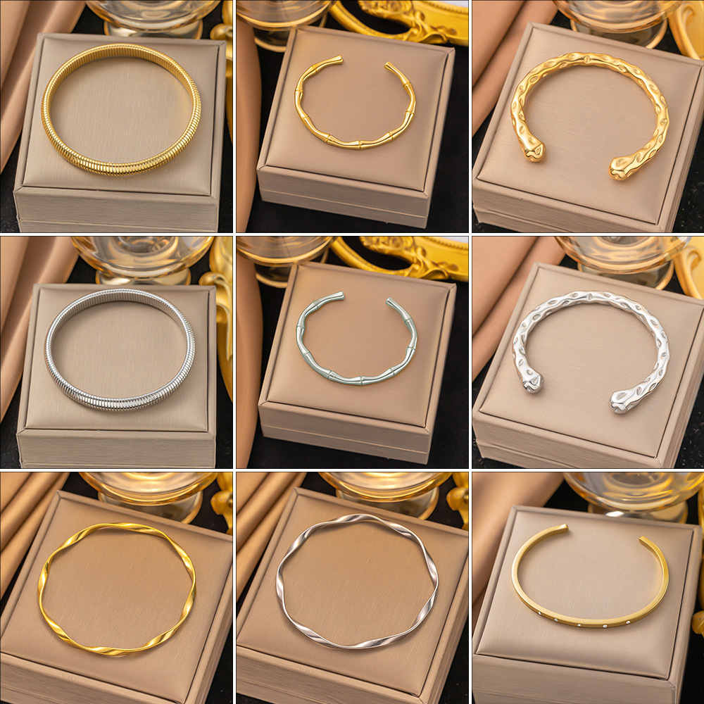 Gelang baja titanium bambu emas 18K, gelang indah modis sederhana cocok untuk semua, sumber pabrik batch langsung 2024