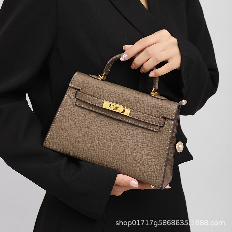 Tas selempang wanita model Kelly merek H, gaya sama, bahan kulit sapi lapis pertama motif daun palem, multifungsi, model baru.