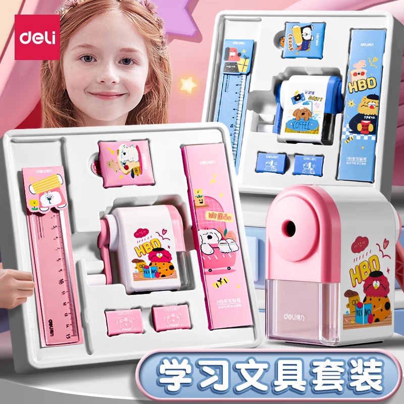 Deli Alat Tulis Set Paket Hadiah Sekolah Kotak Hadiah Hari Anak Hadiah Ulang Tahun Anak Laki-Laki dan Perempuan Perlengkapan Sekolah Siswa
