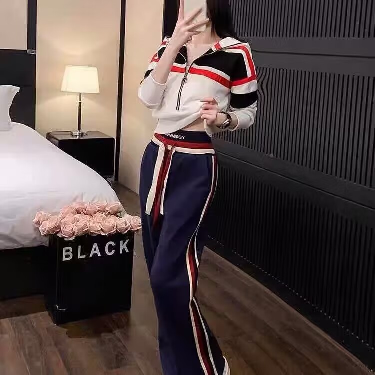 Kardigan kasual bertudung wanita, setelan sweater dua potong pakaian olahraga modis kelas atas musim semi dan musim gugur 2024