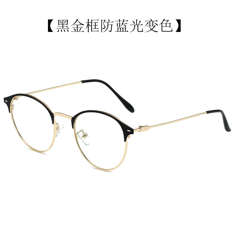 Kacamata retro logam anti cahaya biru, 1920 warna berubah anti cahaya biru bingkai miopia mode lintas batas setengah bingkai kacamata alis polos