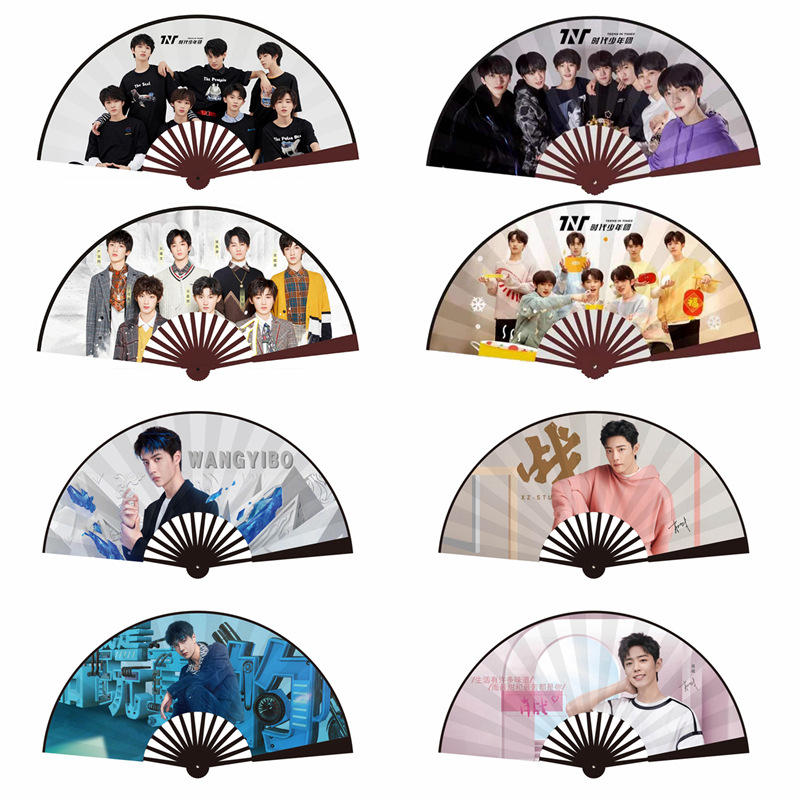 Kipas lipat idola Star aidou Musim Panas keren kain sutra Jepang 8 inci Xiao Zhan Wang Yibo TNT kipas sederhana