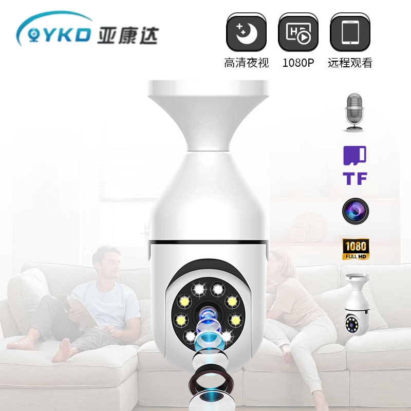 Kamera bohlam lampu panorama nirkabel populer TEMU, kamera bohlam lampu E27 dengan penglihatan malam, lampu ganda, pemantauan rumah 360 derajat