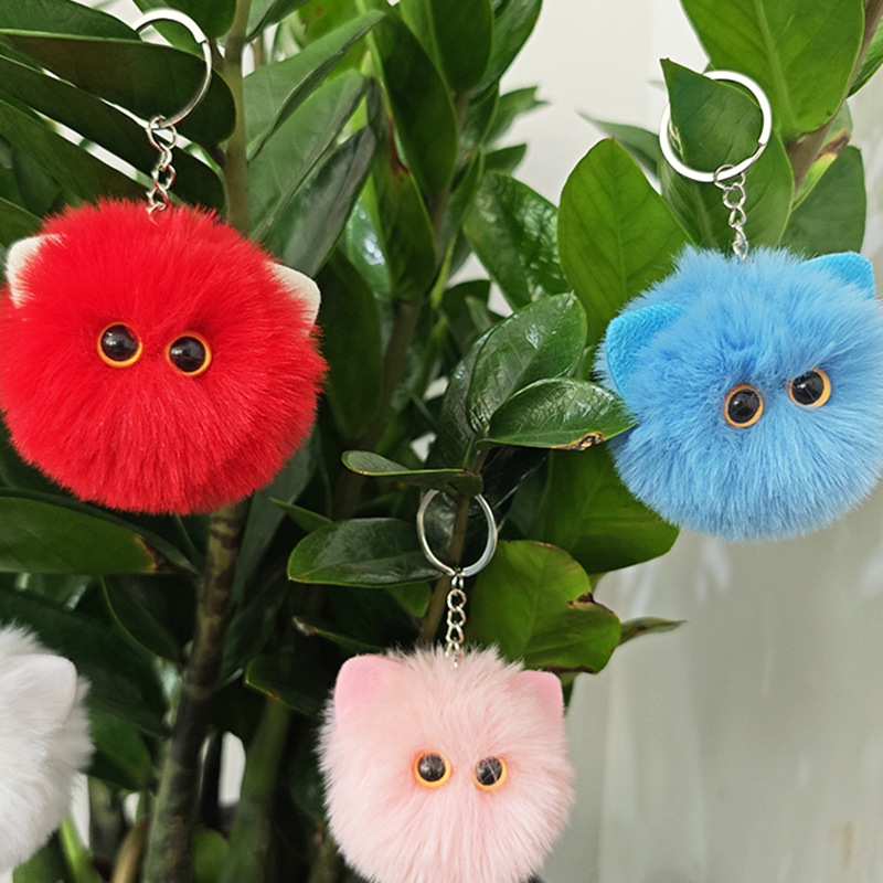 Boneka liontin kepala kucing, gantungan kunci boneka kepala kucing binatang lucu rantai kunci mobil hadiah kecil