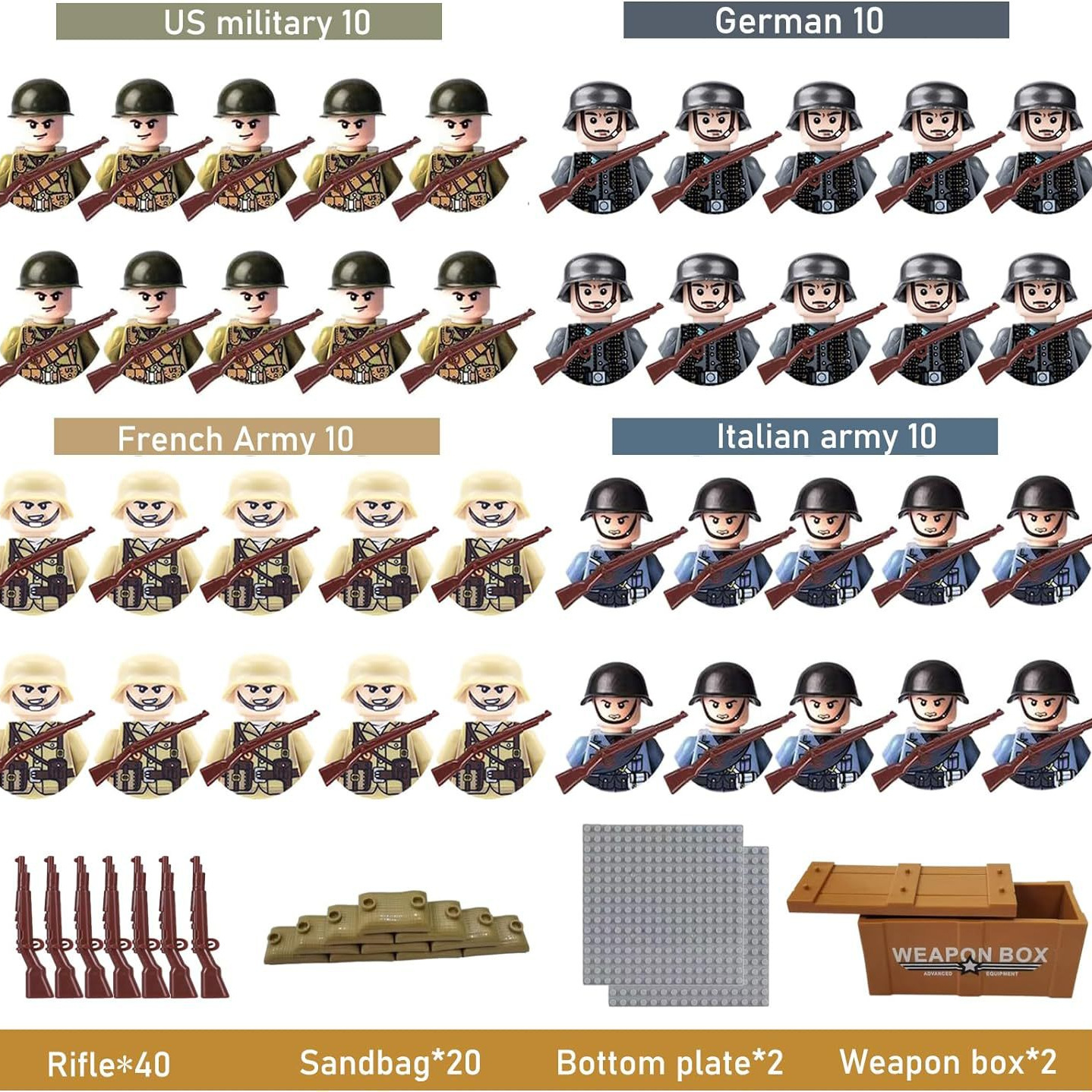 Perang Dunia II Lintas Batas Karakter Militer Blok Bangunan Boneka Grosir Mainan Anak Laki-laki Rakitan Blok Bangunan Panas Khusus untuk Perdagangan Luar Negeri