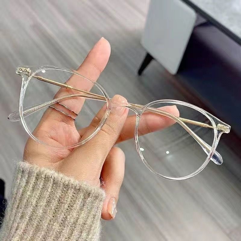 Kacamata hitam anti-sinar biru pria wanita, bingkai hitam miopia bingkai bulat pelangsing polos grosir