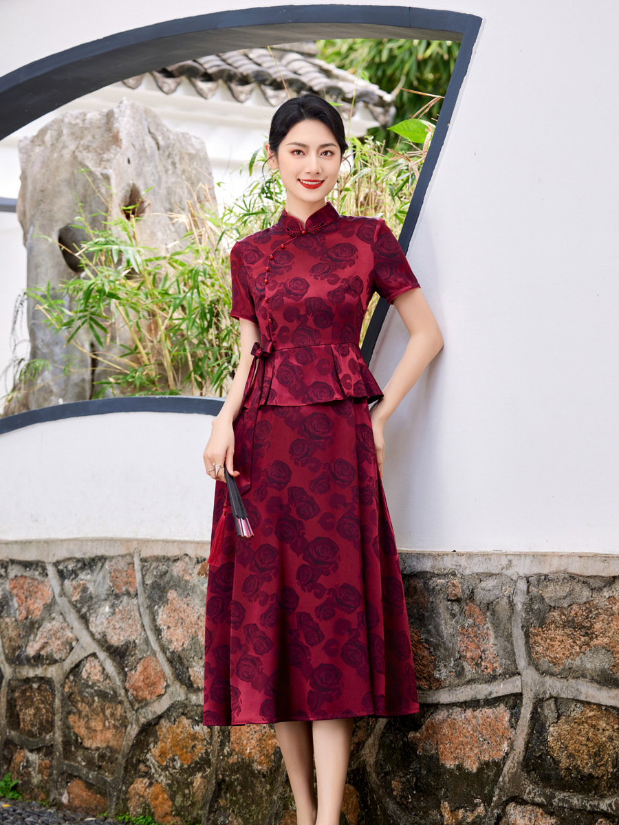 Xi gaun jamuan Pernikahan Ibu imitasi asetat, gaun cheongsam gaya nasional mulia palsu dua potong